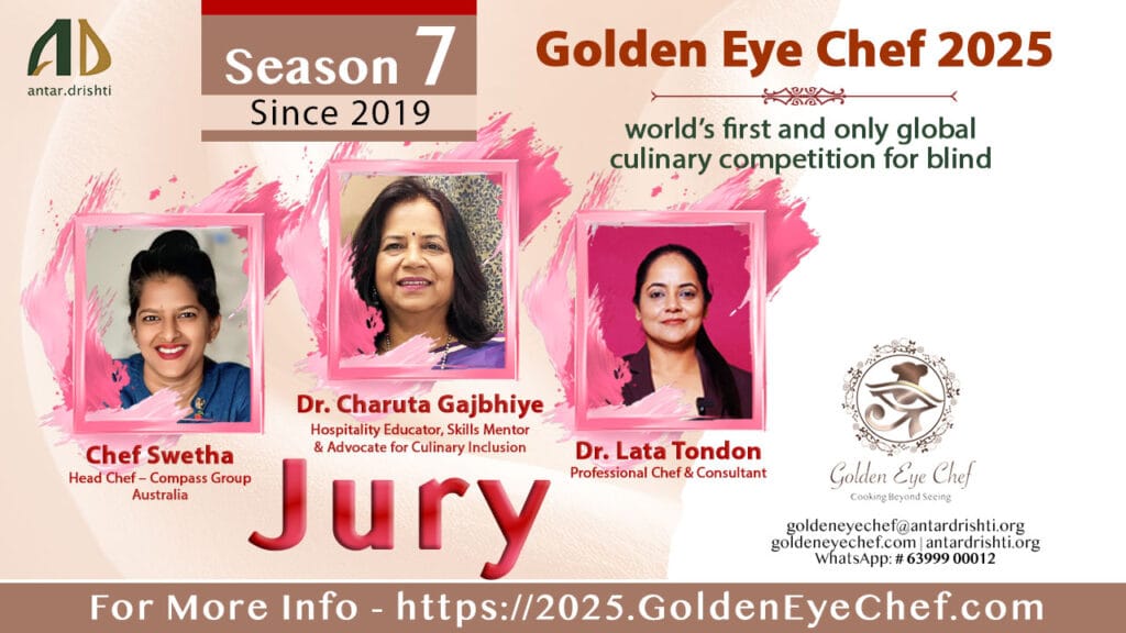 Jury / Phase – 1 | Golden Eye Chef 2025 – International Cooking Contest for the BlindDr. Charuta Gajbhiye, Dr. Lata Tondon and Chef SwethaDr. Charuta GajbhiyeDr. Lata TondonChef Swetha